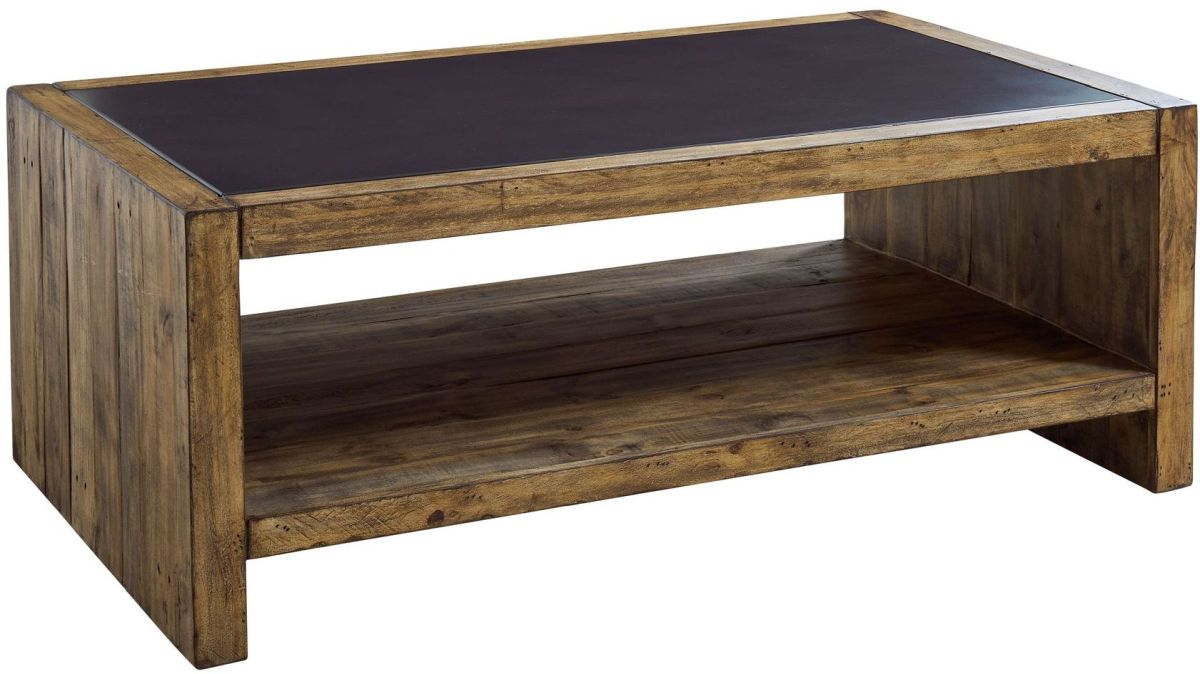 Add a rustic feel to your living room with the Jake occasional set. The coffee table has a metal insert and open bottom shelf. Clean lines and a rustic style add interest to the piece.Read More
