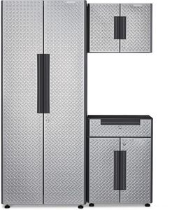 The Gladiator® Flex Cabinet System II is your all-in-one, versatile storage solution. These garage storage cabinets include one 30" tall cabinet, one 24" wall cabinet and one 24" 1-drawer, 2-door base cabinet. Tough features like welded steel construction and fully-adjustable shelves meet modern design with recessed handles, soft-close doors and auto-return drawers to create a complete garage cabinet system.Read More